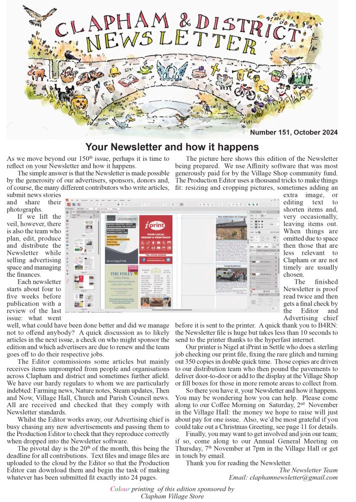 Your newsletter and how it happens | Alice Morphet | Plus all the latest news and features from the farm, the church, the parish council, nature, steam and much more (click front cover below to read).