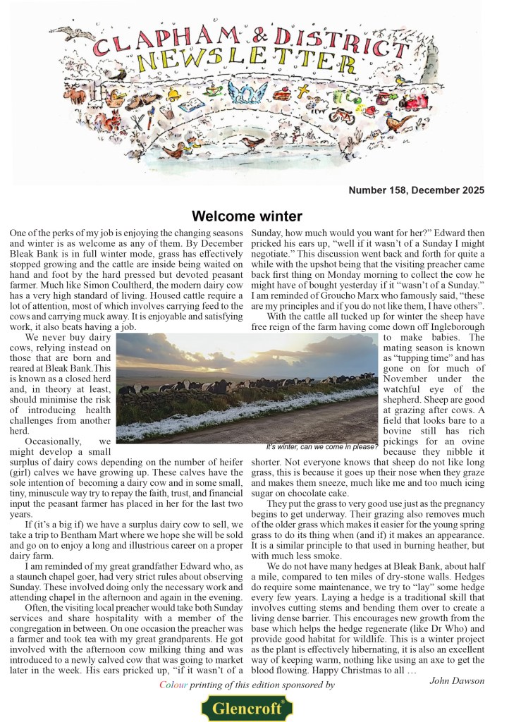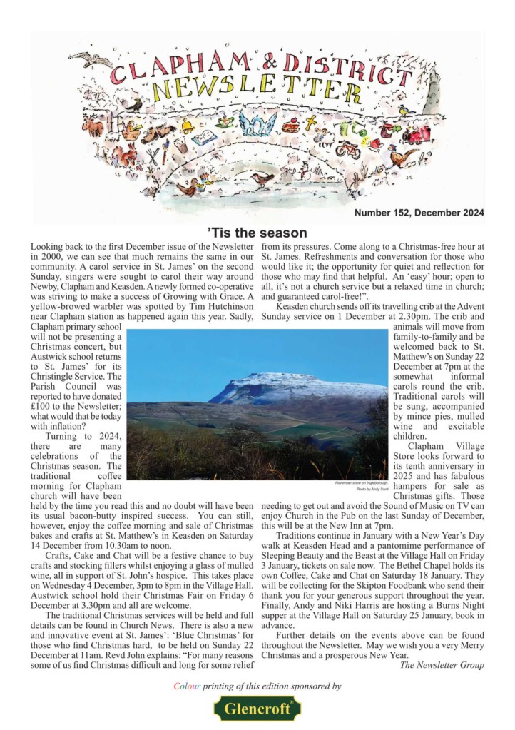 ‘Tis the season | Historic A65 road maps | Wordsearch | Plus all the latest news and features from the farm, the church, nature, and much more (click front cover below to read).