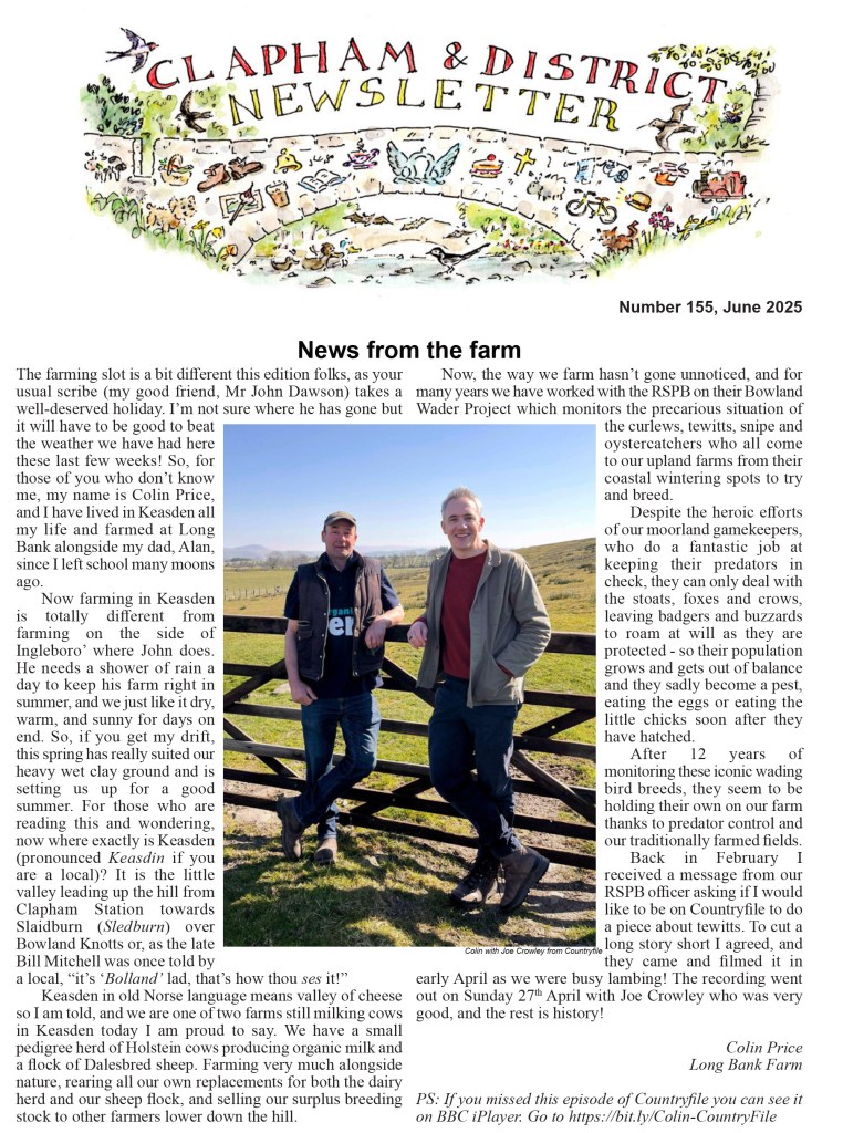 Dennis Bullock & the Dalesman | Plus all the latest news and features from the farm, the parish council, the church, nature, and much more (click front cover below to read).