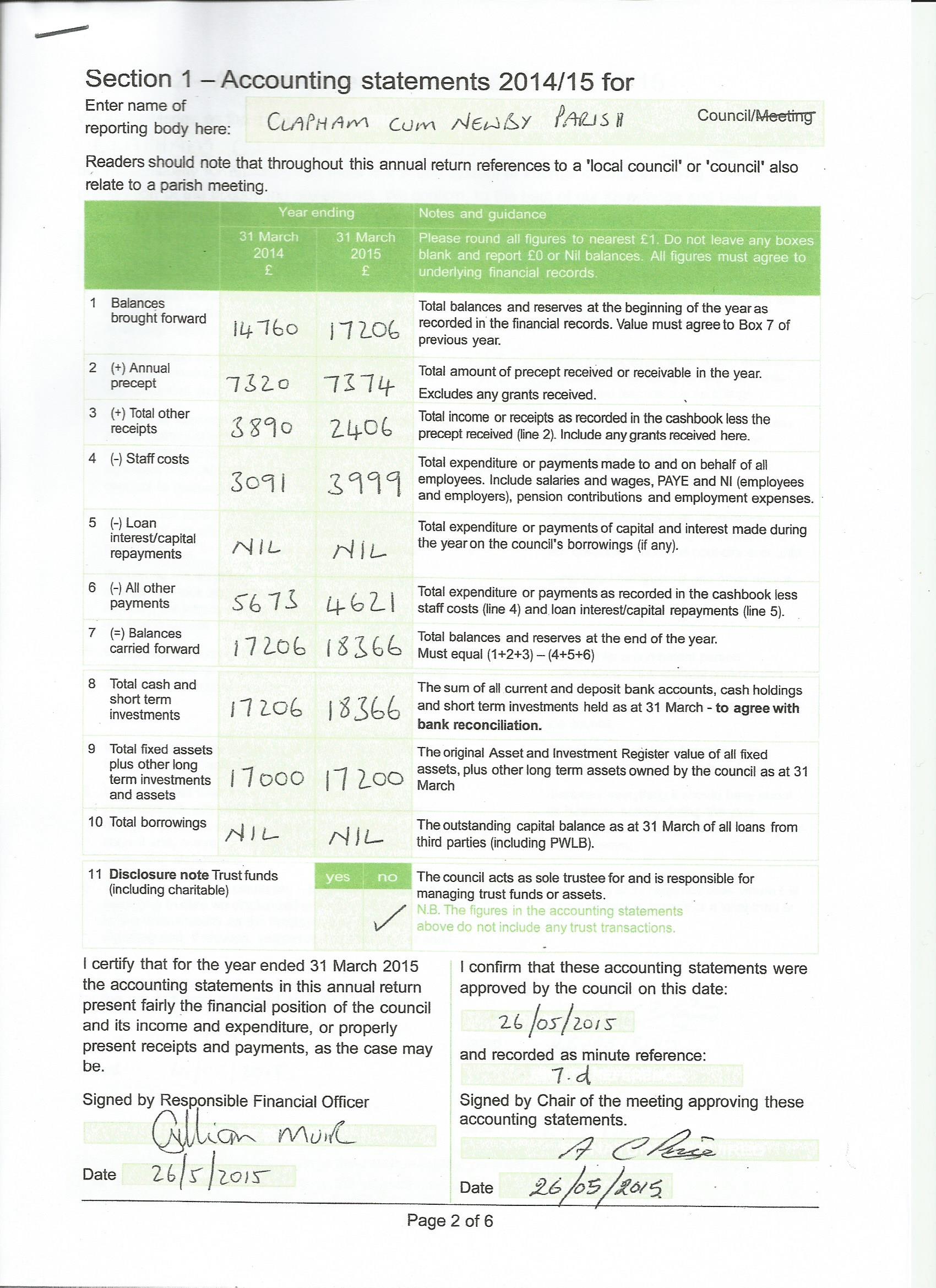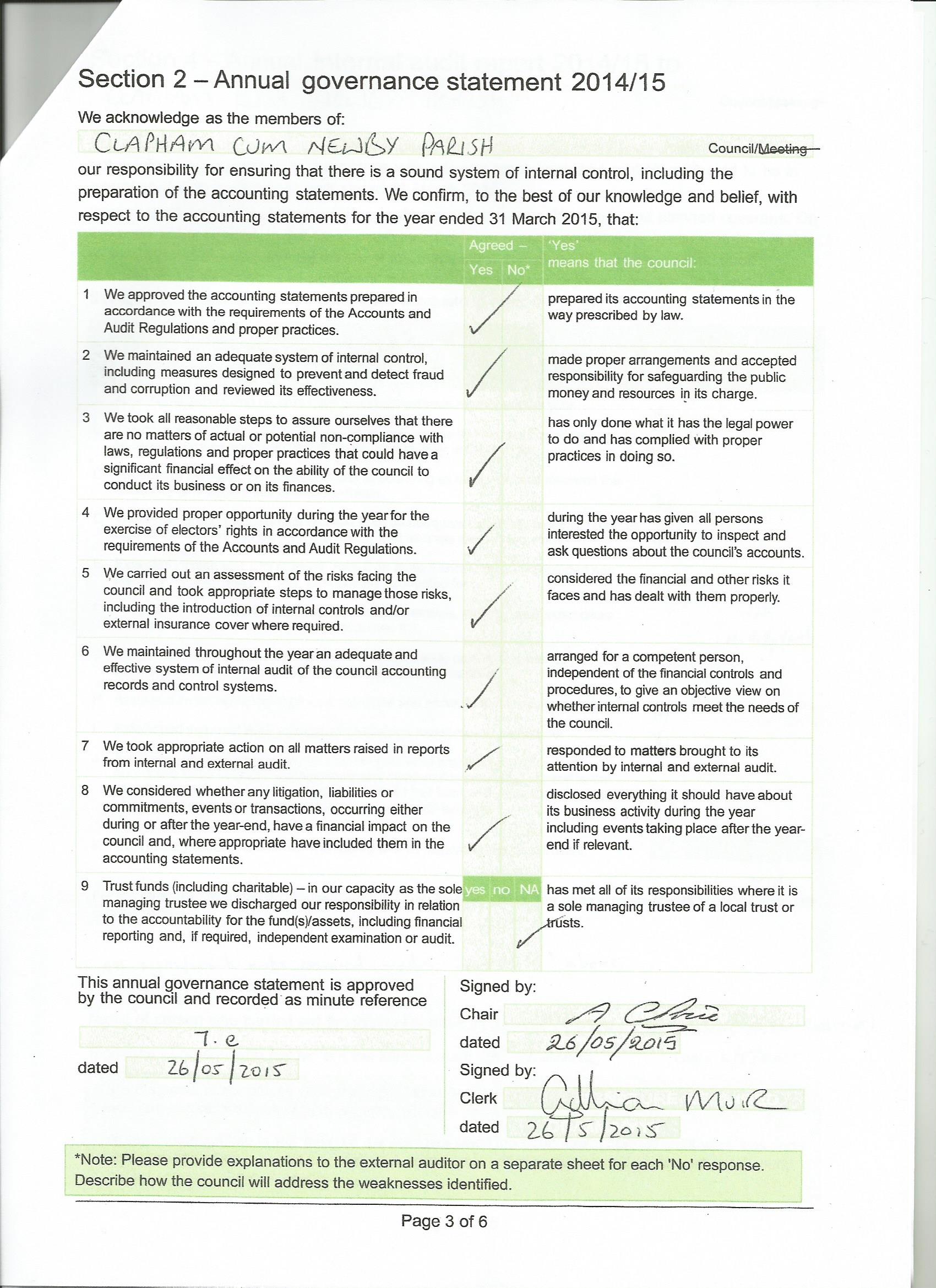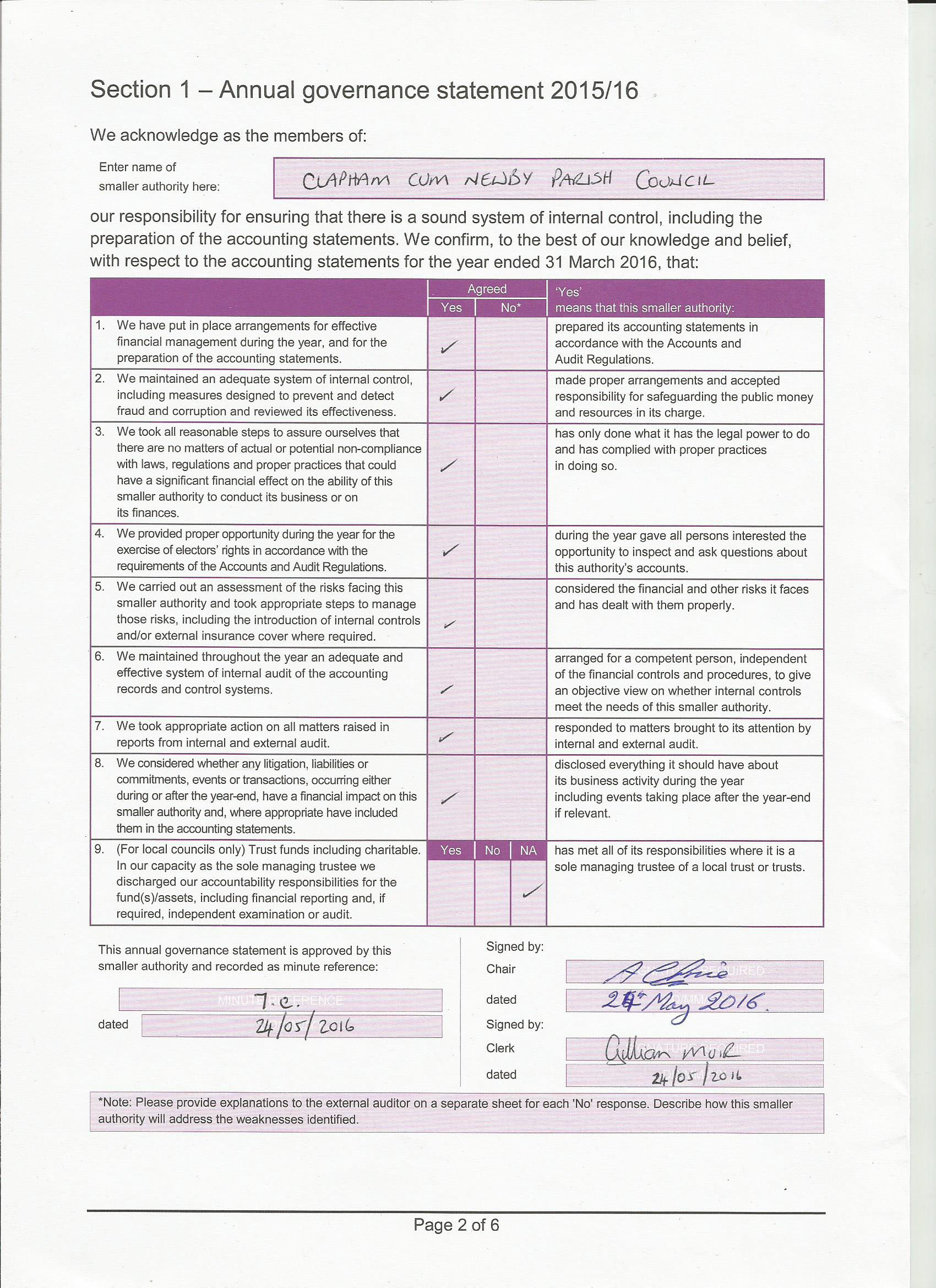 | Agenda & Minutes 2015-16 Jan 2015 Agenda / Minutes (09) Feb 2015 Agenda / Minutes (10) Mar 2015 Agenda / Minutes (11) Apr 2015 Agenda / Minutes (01) May 2015 Agenda / Minutes (02) Jun 2015 Agenda / Minutes (03) Jul 2015 Agenda / Minutes (04) Sep 2015 Agenda / Minutes (05) Oct 2015 Agenda / Minutes (06) Nov 2015 Agenda / Minutes (07) Jan 2016 Agenda / Minutes (08) Feb 2016 Agenda / Minutes (09) Mar 2016 Agenda / Minutes (10) | Financial Documents 2015-16 Bank Statement Apr 2014 – Mar 2015 Bank Reconcile 2014 – 15 Governance Statement for 2014 – 15 for Annual Return Accounting Statement for 2014 – 15 for Annual Return Explanation of Variances 2014 – 15 Internal Audit Report 2014 – 15 |