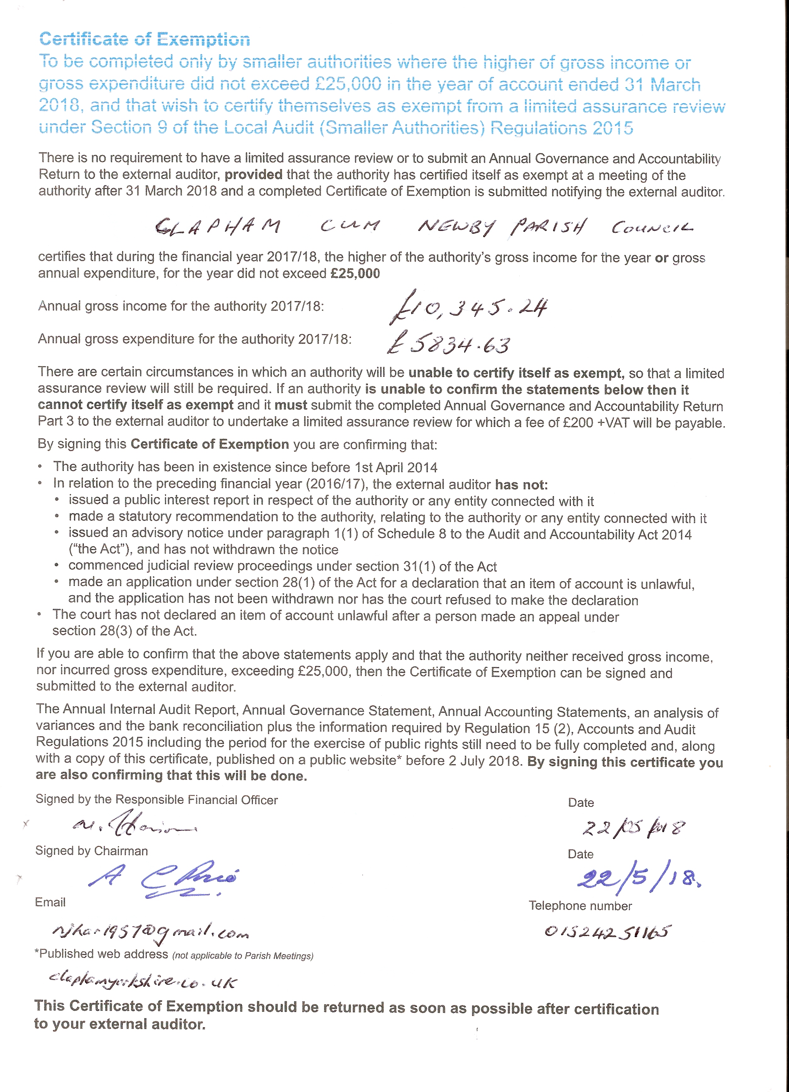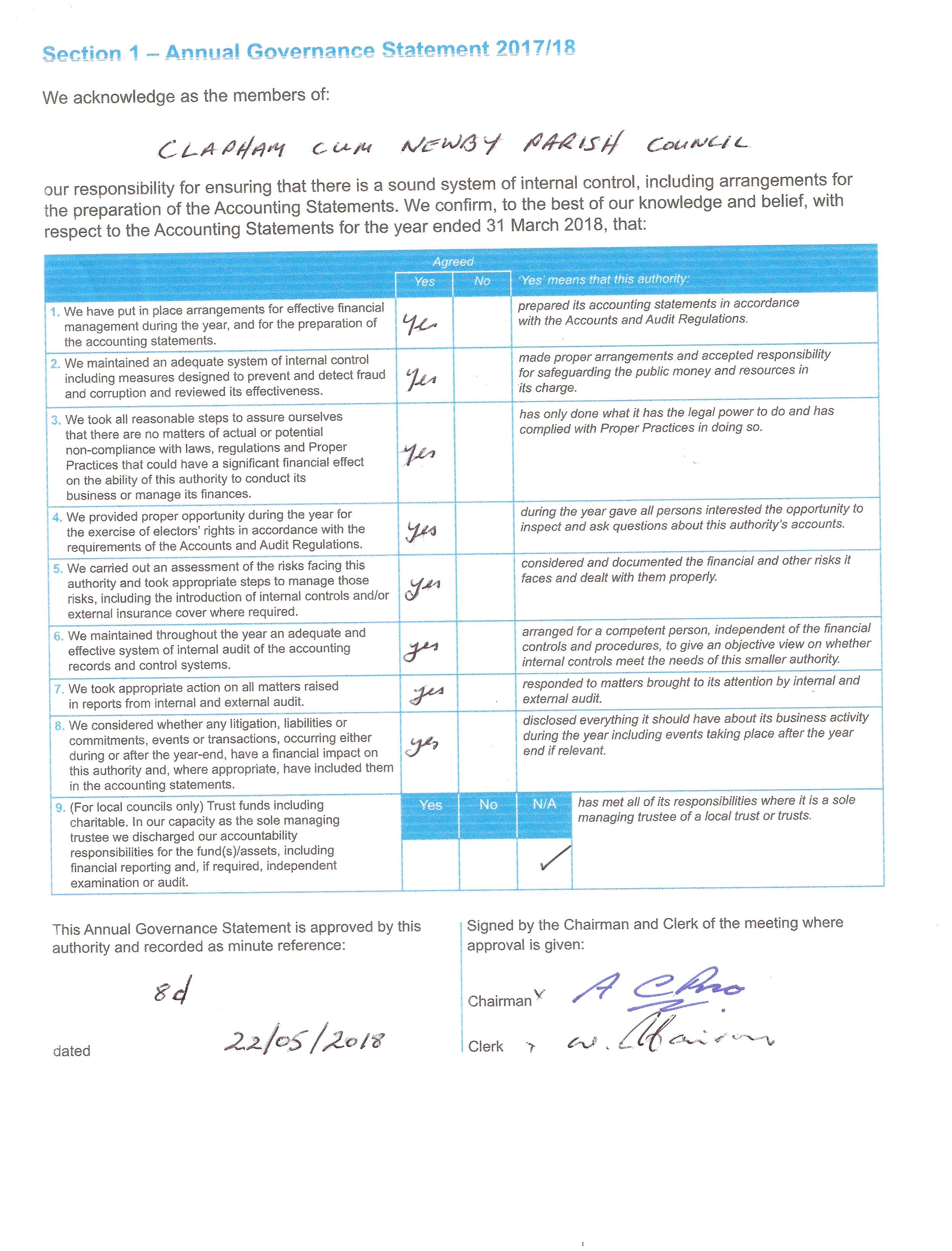| April 2021 Agenda / Minutes 01 June 2021 Agenda / Minutes 02 July 2021 Agenda / Minutes 03 September 2021 Agenda / Minutes 04 October 2021 Agenda / Minutes 05 December 2021 Agenda / Minutes 06 January 2022 Agenda / Minutes 07 February 2022 Agenda / Minutes 08 March 2022 Agenda / Minutes 09 Annual Parish Meeting (APM) May 2022 APM Agenda | Financial Documents 2021-22 Bank Statement HSBC 1 Apr 21 – Mar 22 Bank Statement HSBC 2 Apr 21 – Mar 22 External Audit Documents 2021-22 Accounting Statements Annual Governance Statement Internal Audit Report Bank Reconciliation 2021-22 Certificate of Exemption Explanation of variances 2021-22 Notice of public rights |